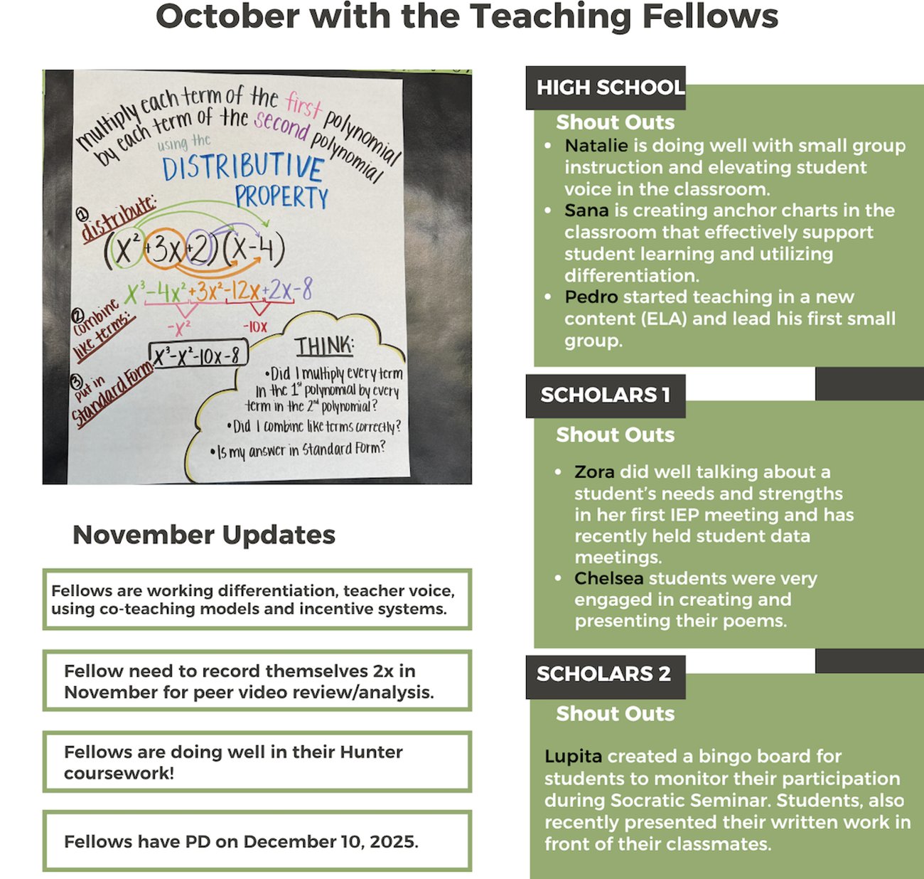 The East Harlem Teaching Residents across our campuses continue to succeed in providing additional academic support for our scholars in the classroom. Teaching Residents bring fresh energy to our schools while gaining invaluable experience in teaching.