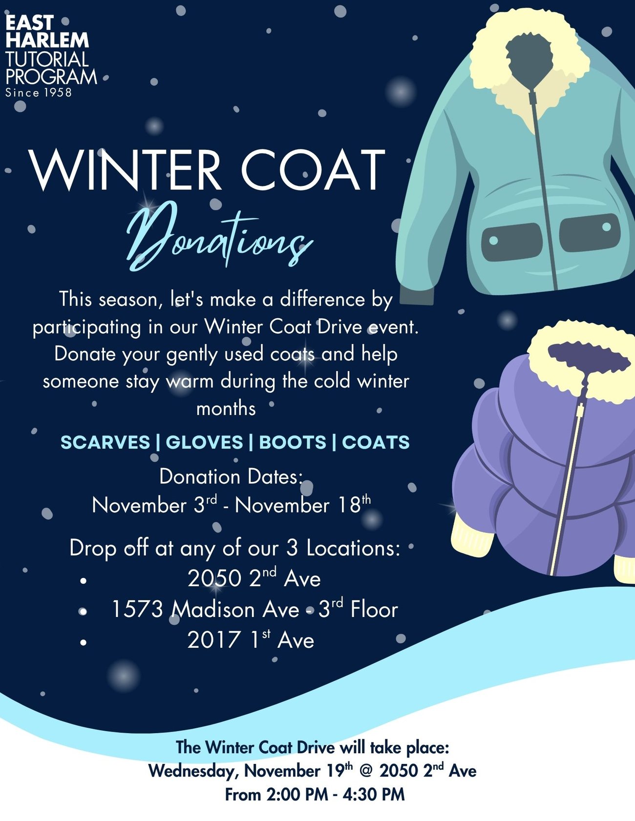 If you have coats you no longer want or need, please bring them to the main office of your scholar’s school.